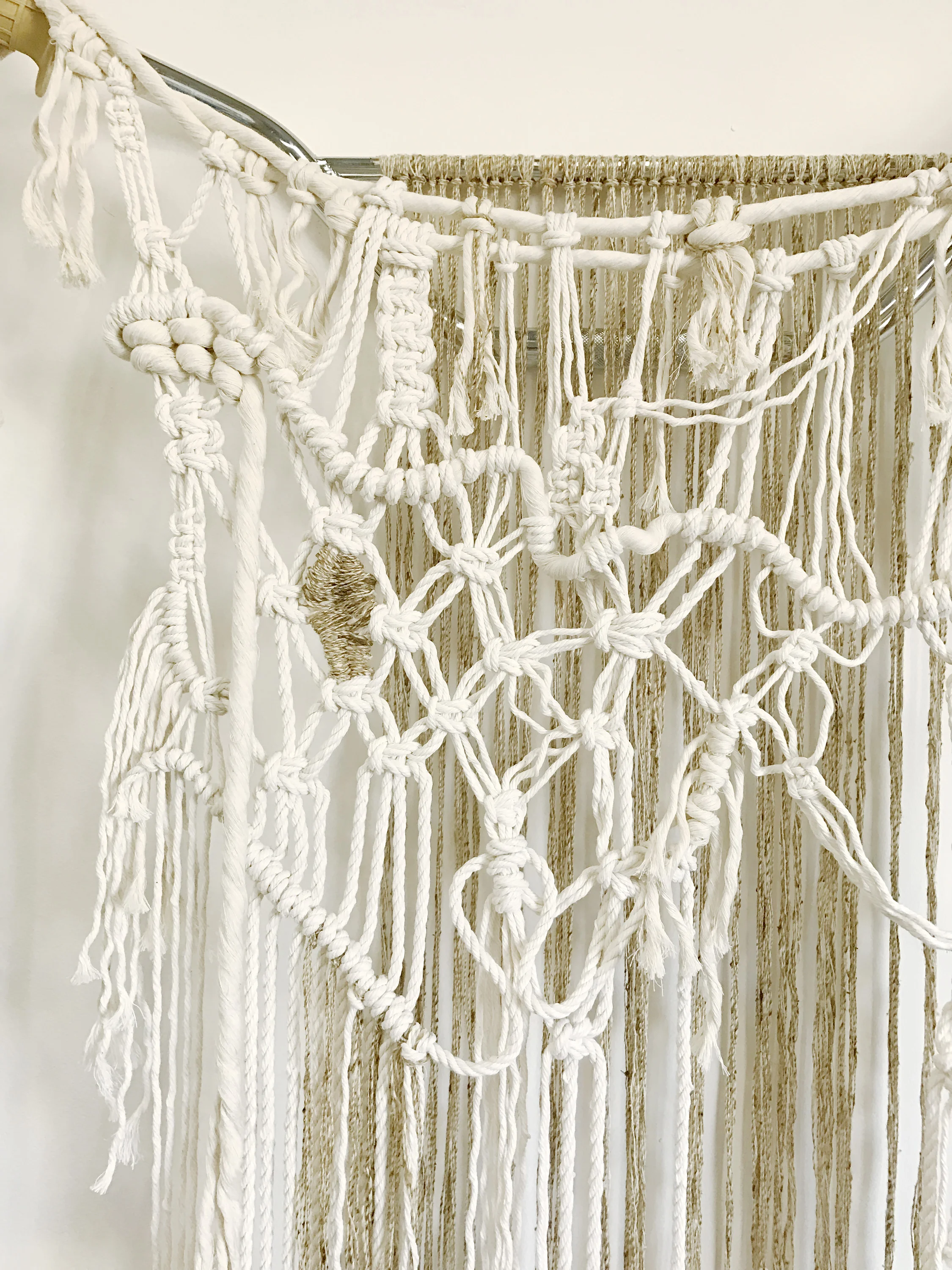 A little seat for you (or your things), this small and sweet bench is hand-knotted with love.